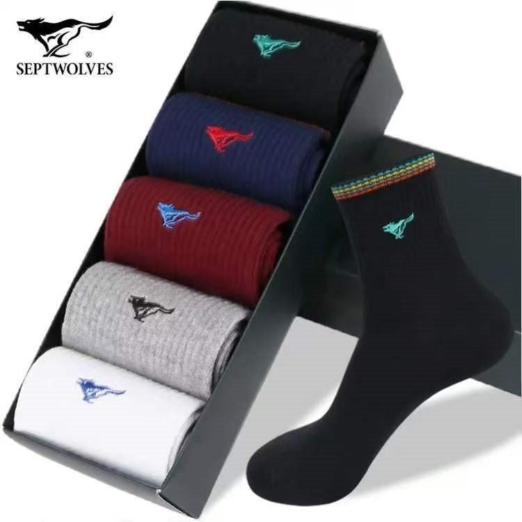 七匹狼 男纯棉加厚中筒袜5双