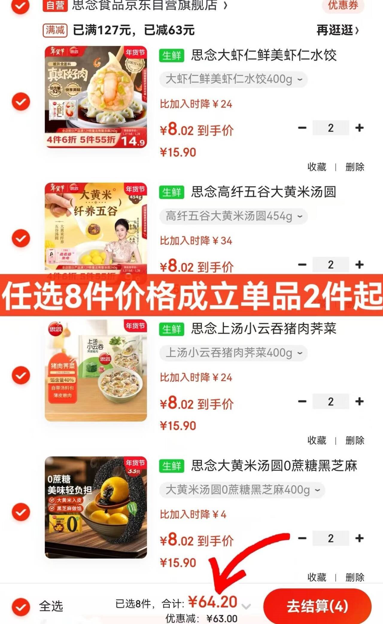思念面点发車 自营 大虾仁水饺/馄饨/包子 任选8件64.2亓,才折8亓/件好单发报员2026年02月01日 17:270举报 ——思念面点发車——【自营】大虾仁水饺/馄饨/包子https://u.jd.com/JaZ4Mxs任选8件64.2亓,才折8亓/件*大克重货值高 皮薄馅足好吃复制文案