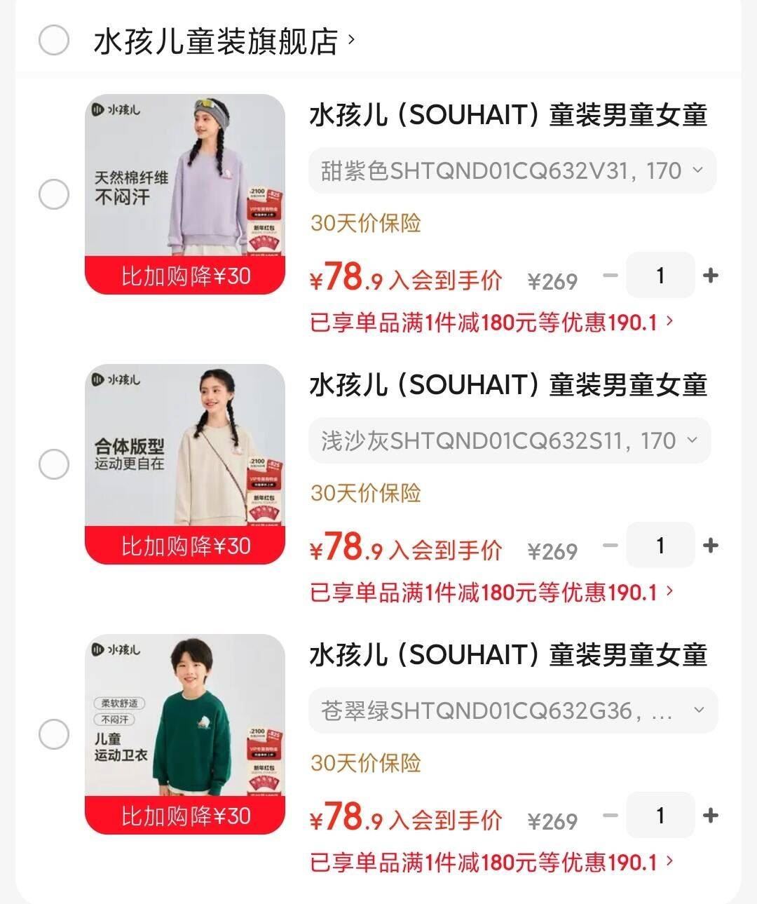 78.9元 多款任选! 水孩儿 儿童秋冬套头卫衣 男孩女孩都有 品质很好~ 好单发报员 2026年02月01日 18:41 0 举报 78.9元 多款任选!水孩儿 儿童秋冬套头卫衣https://u.jd.com/J6AqMfs 男孩女孩都有 品质很好~ 复制文案