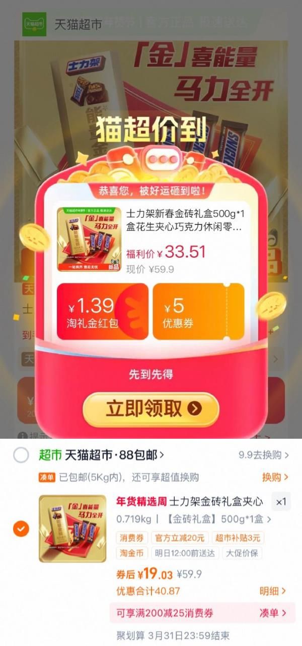 士力架新春金砖礼盒500g*1盒,领礼金