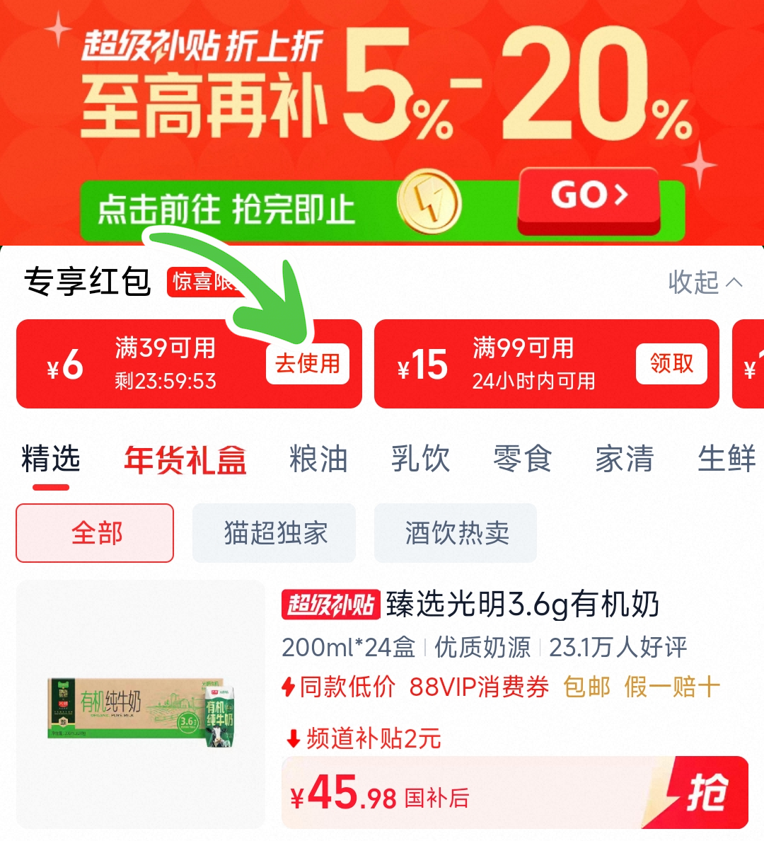 下拉进超补领39-6红包 45.9亓 折1.9亓/盒 光明有机纯牛奶200mL*24盒 好单发报员 2026年02月02日 10:29 0 举报 下拉进超补领39-6红包45.9亓 折1.9亓/盒光明有机纯牛奶200mL*24盒https://m.tb.cn/h.7s0i0g6 复制文案