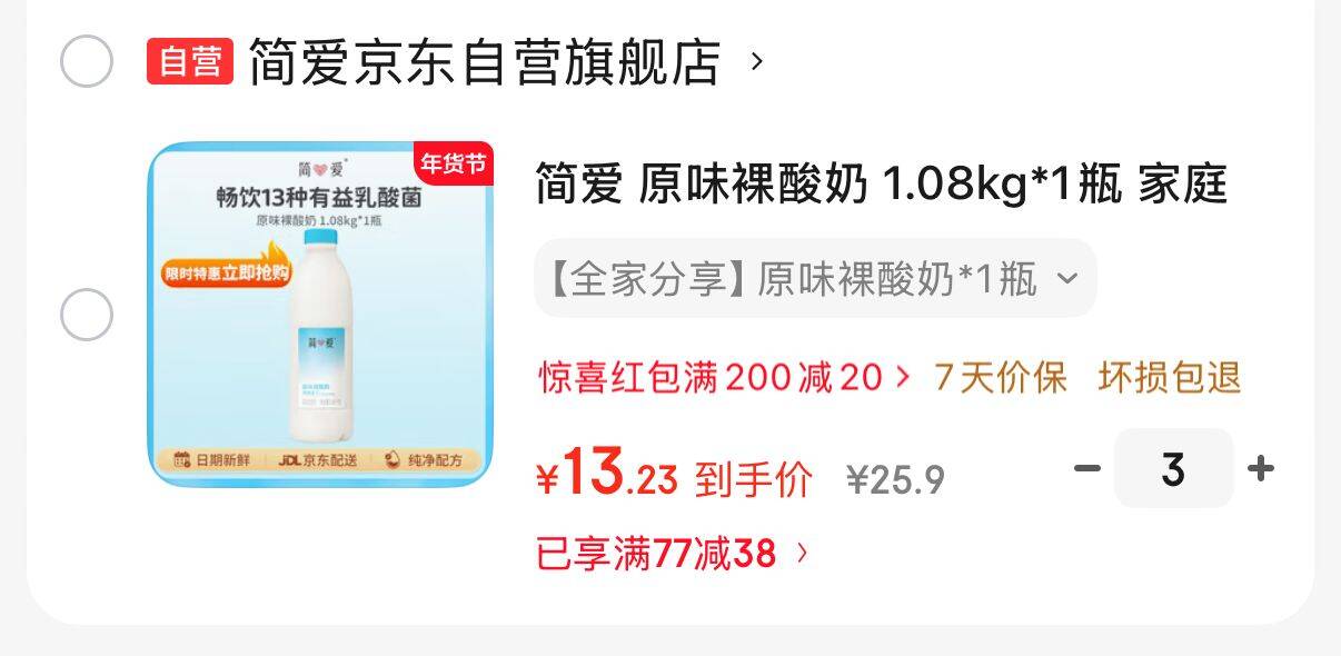 简爱 原味裸酸奶 1.08kg/瓶