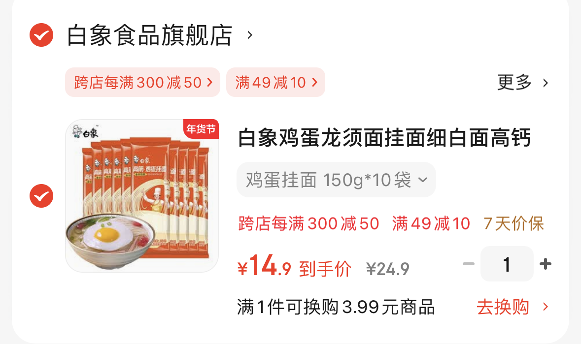 白象 高筋鸡蛋挂面150g*10袋