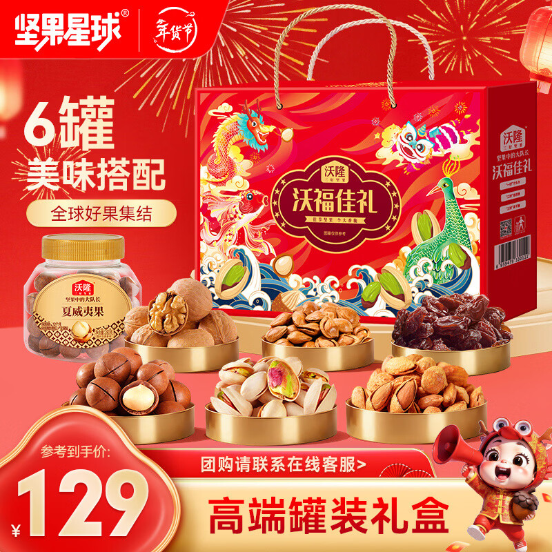 沃隆 坚果礼盒沃福佳礼 1.5kg/6罐