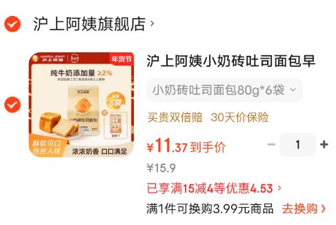 沪上阿姨小奶砖80g*6袋