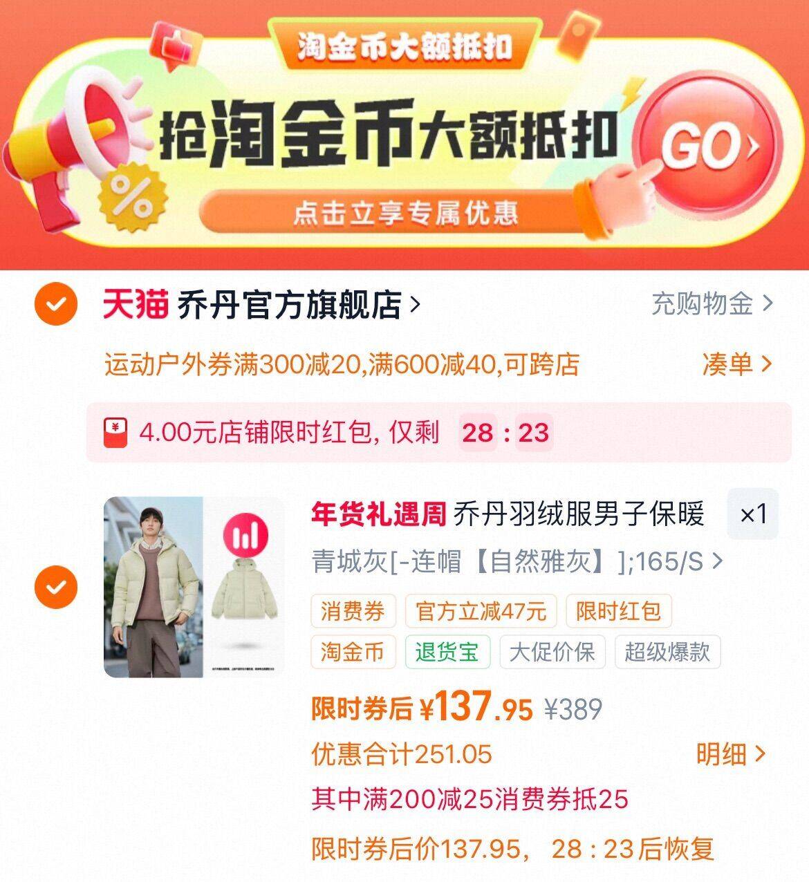 下拉拍 运动券 有15首单,限时 137.9亓 乔丹 加厚运动羽绒服外套好单发报员2026年02月03日 10:070举报 下拉拍 运动券有15首单,限时 137.9亓乔丹 加厚运动羽绒服外套https://m.tb.cn/h.7t4ohQE复制文案