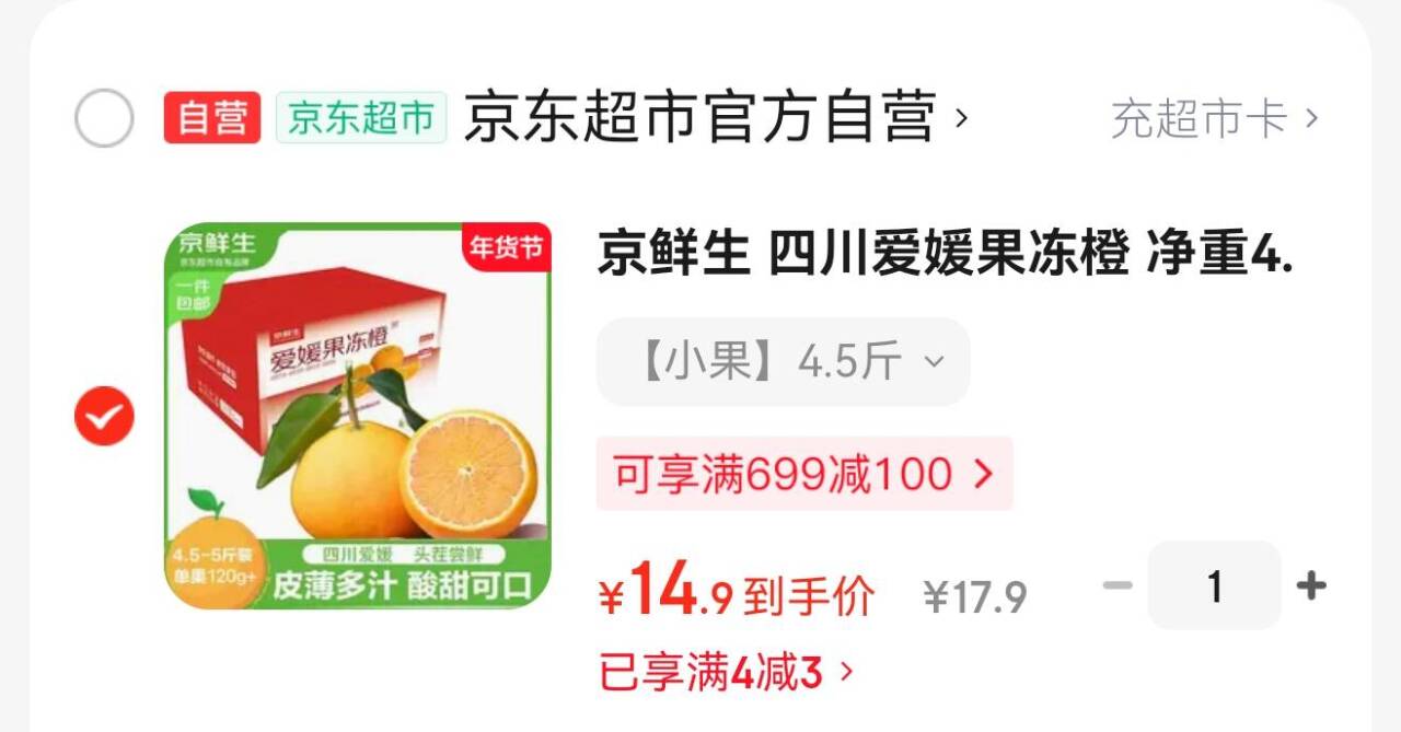 京鲜生 四川爱媛果冻橙 14.9元净重4.5-5斤单果120g好单发报员2026年02月04日 08:180举报 京鲜生 四川爱媛果冻橙14.9元净重4.5-5斤单果120g https://u.jd.com/JG7uODg复制文案
