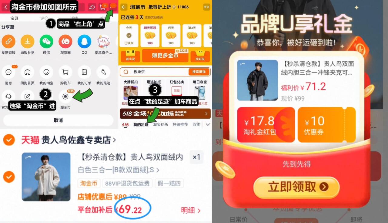 69.2亓神圿叠礼金 2金币 贵人鸟 情侣三合一冲锋衣 1、如图点右上角3个点,选淘金币好单发报员2026年02月04日 12:080举报 69.2亓神圿叠礼金 2金币【贵人鸟】情侣三合一冲锋衣1、如图点右上角3个点,选淘金币2、选我的足迹-找到商品加车拍下https://m.tb.cn/h.7t3LR0b复制文案