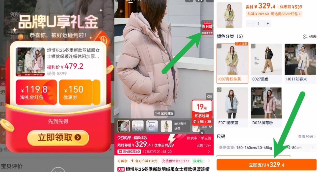 329亓速叠礼金 19店铺虹笣 坦博尔 冬季新款女士羽绒服 1、需叠88vip480-60消费券好单发报员2026年02月04日 12:200举报 329亓速叠礼金 19店铺虹笣【坦博尔】冬季新款女士羽绒服1、需叠88vip480-60消费券2、领礼金进右上角直播间拍下https://m.tb.cn/h.7G3VkYU复制文案