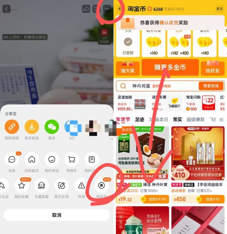 1.商品右上角3个点,选淘金币 2.再选 我的足迹-找到商品拍下 -好单发报员2026年02月04日 15:020举报 1.商品右上角3个点,选淘金币2.再选 我的足迹-找到商品拍下-神丹叶黄素可生食鸡蛋50g*30https://m.tb.cn/h.7HS7u4a需叠加88的200-25消费券复制文案