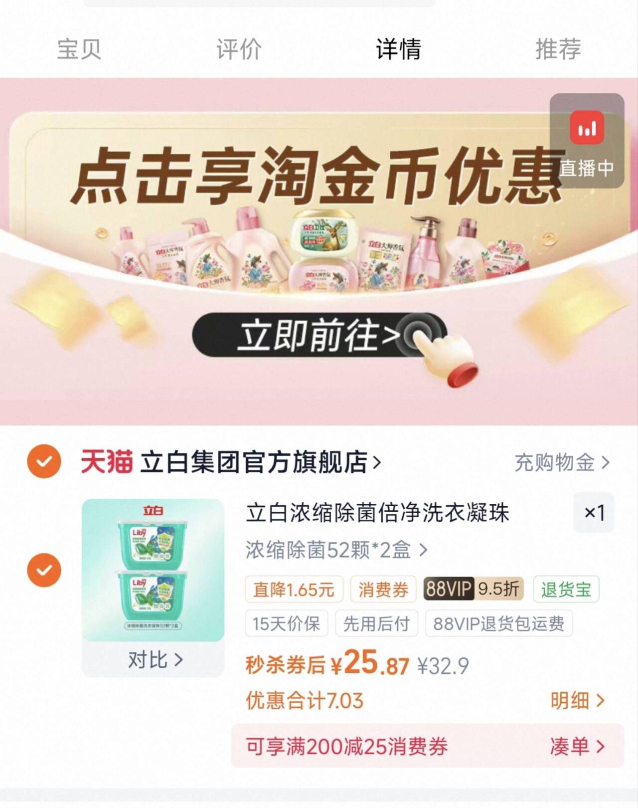 立白除菌洗衣凝珠52颗*2盒 天降 下拉抵琻币25元.8好单发报员2026年02月04日 15:230举报 立白除菌洗衣凝珠52颗*2盒天降 下拉抵琻币25元.8https://m.tb.cn/h.7HC5jEE复制文案