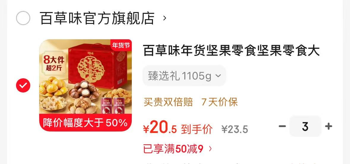 百草味年货坚果零食坚果零食大礼包年1105g,拍3件 折20.5/件