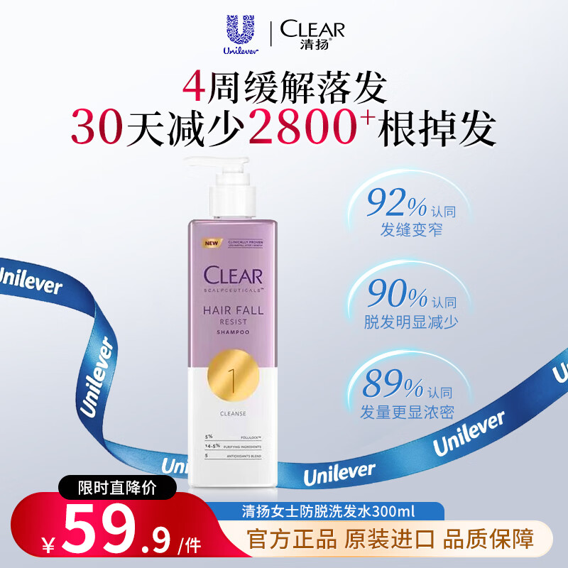 自营清扬 女士防脱洗发水300ml
