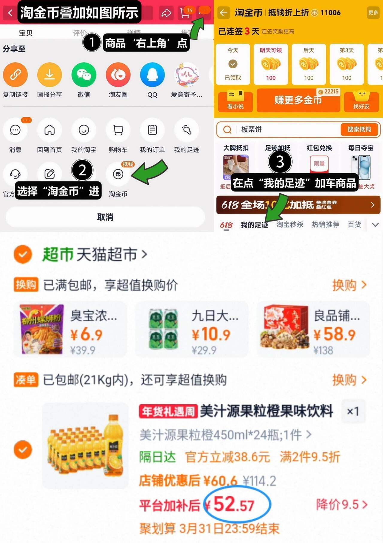 1、如图点右上角3个点,选淘金币