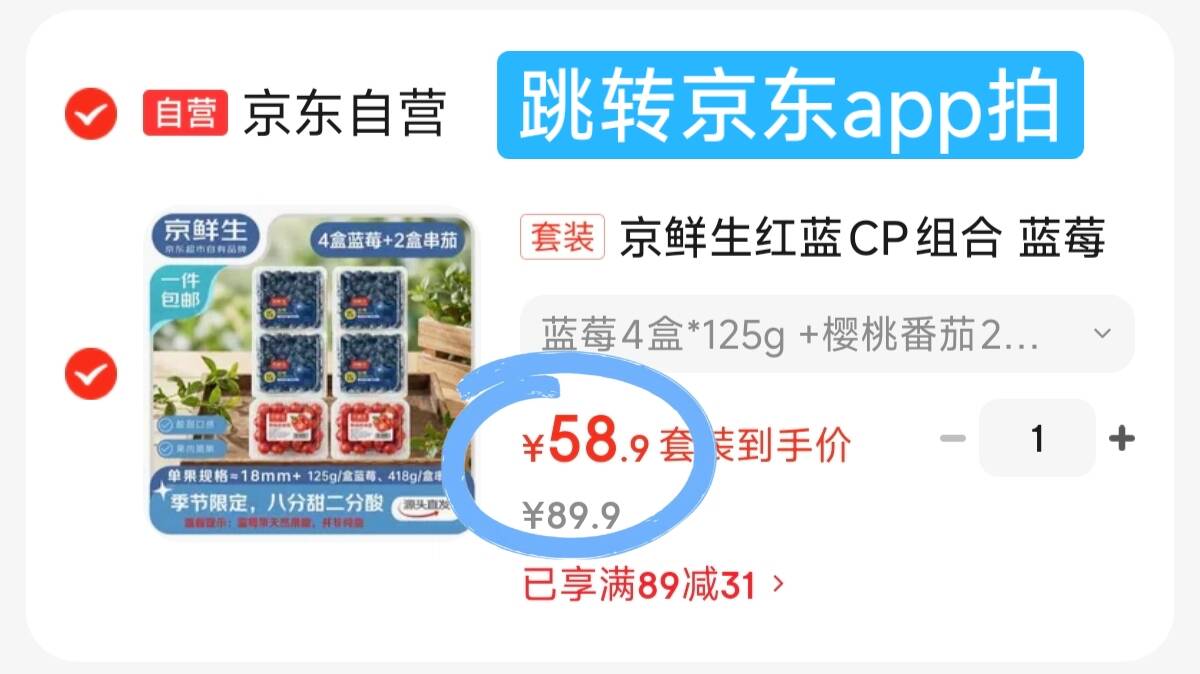鲜生红蓝CP组合58元.9! 蓝莓4盒 樱桃番茄418g*2盒 领 好单发报员 2026年02月04日 22:11 0 举报 鲜生红蓝CP组合58元.9!蓝莓4盒 樱桃番茄418g*2盒领http://gz.my22.fun/t7MsIn拍https://u.jd.com/Jg9z0cu 复制文案