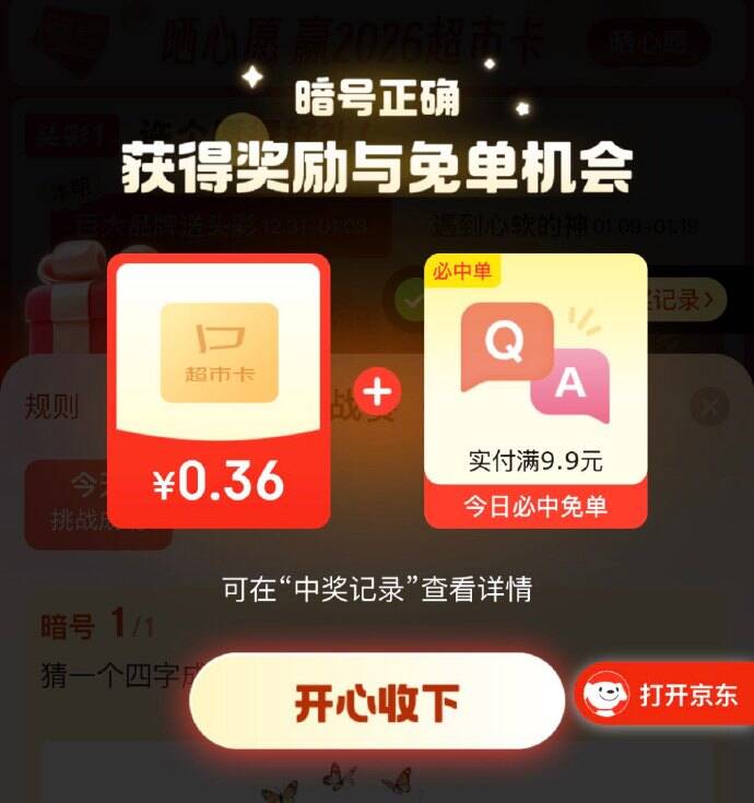 【京东】对暗号抽超市卡