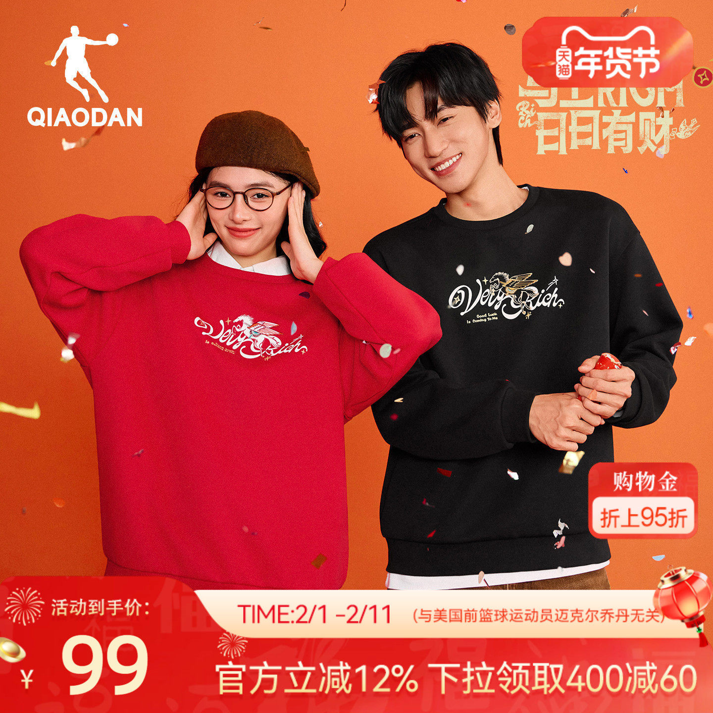 乔丹红色情侣卫衣