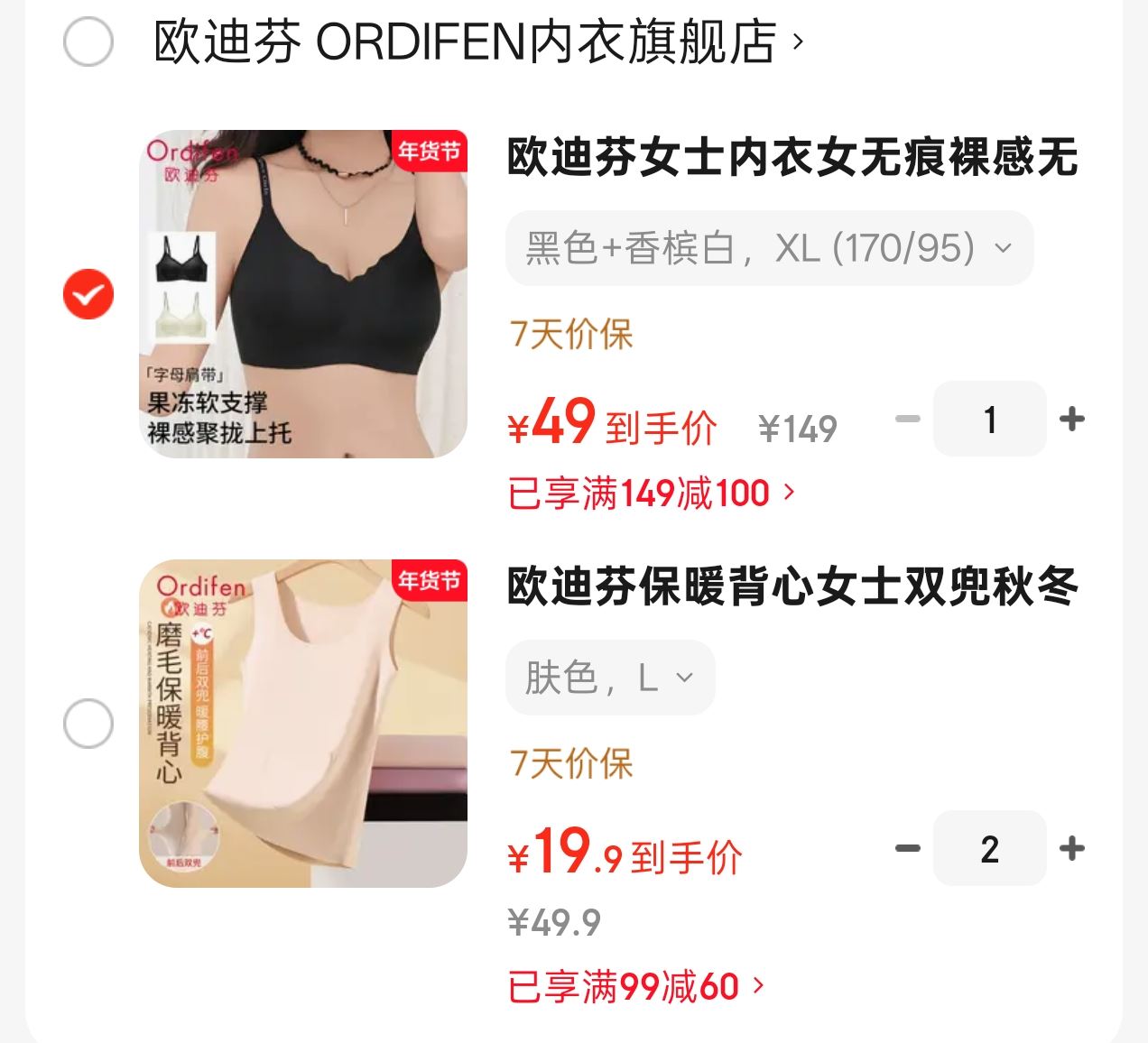 “欧迪芬”聚拢内衣2件装
