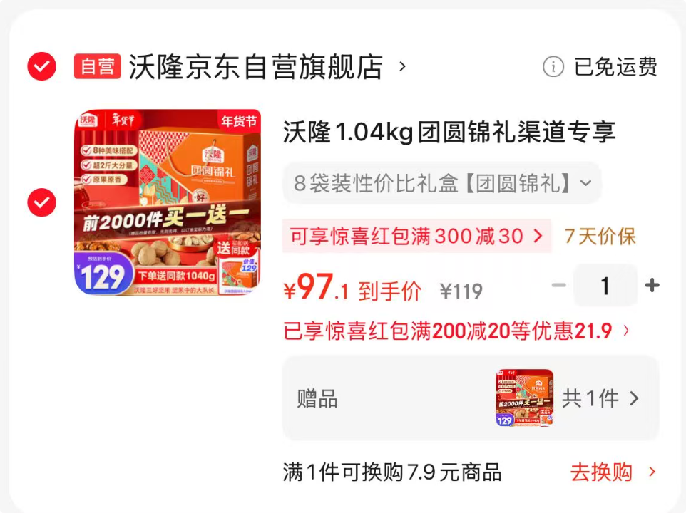 自营 沃隆 坚果礼盒2.08斤
