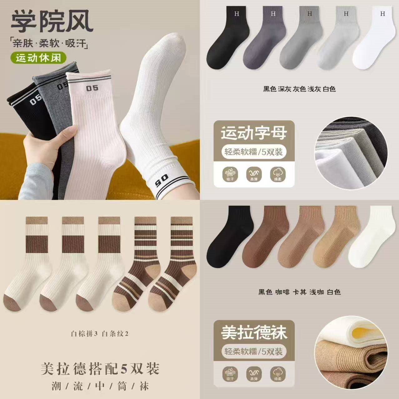 顶瓜瓜 男女秋冬中筒袜5双装