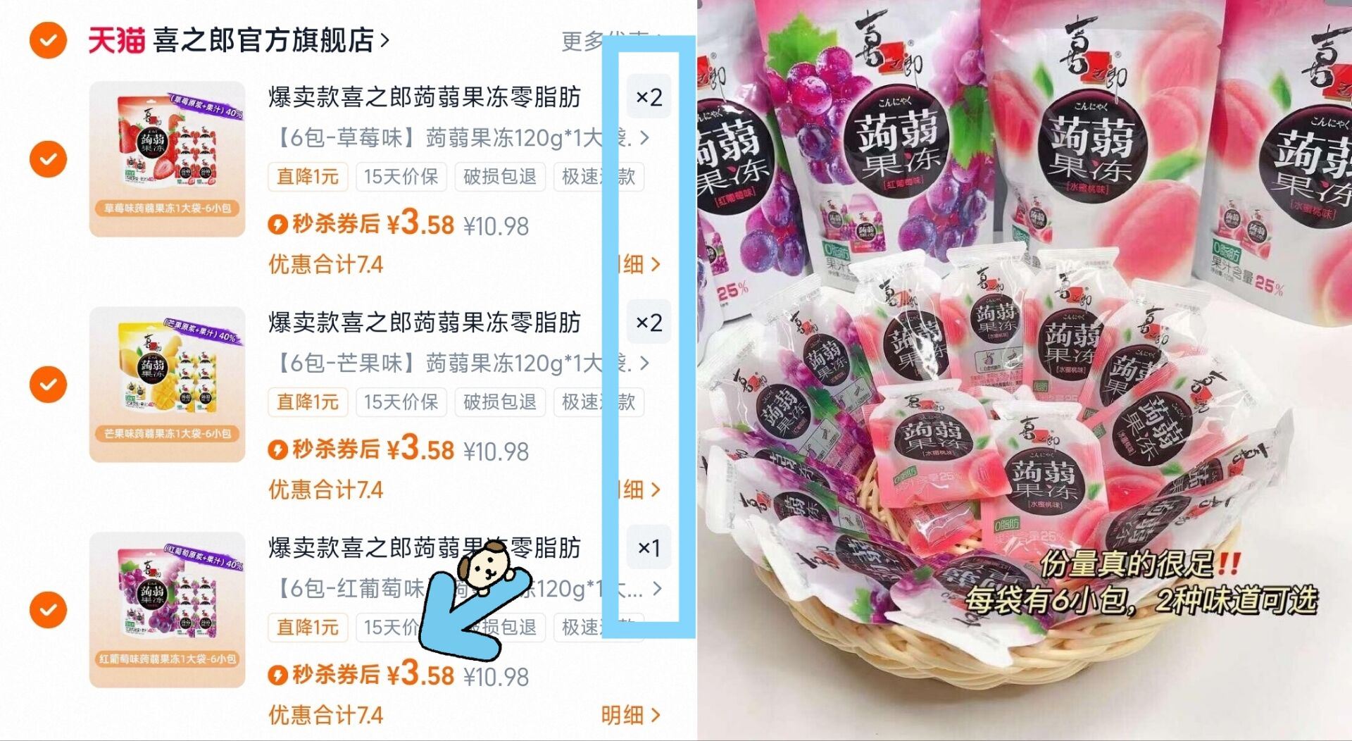 喜之郎蒟蒻果冻多口味选5件