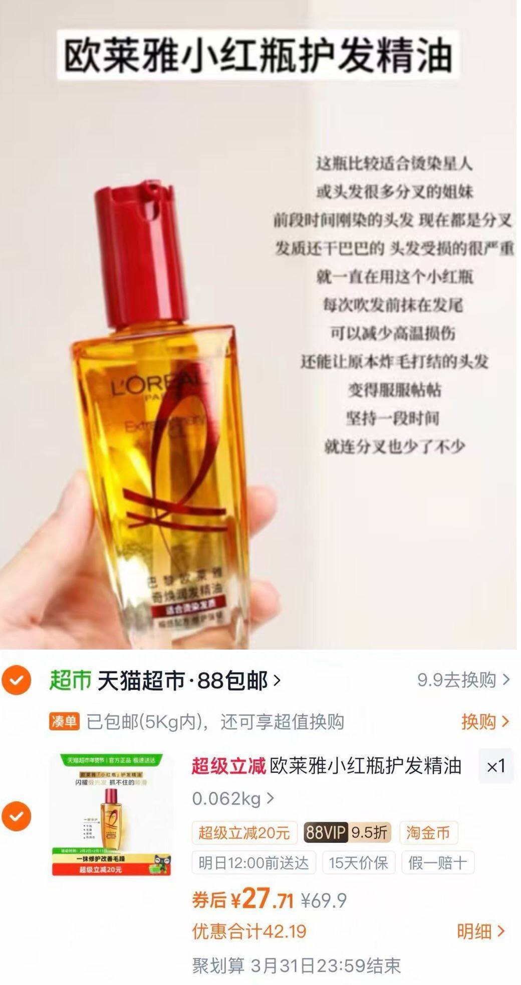 88vip 27.7元亲测好用 欧莱雅护发精油小红瓶50ml 秒吸收毛躁头给我冲! 好单发报员 2026年02月23日 21:03 0 举报 88vip 27.7元亲测好用欧莱雅护发精油小红瓶50ml 秒吸收毛躁头给我冲!毛燥头发两泵就柔顺服帖了-https://m.tb.cn/h.7z3sjJz 复制文案