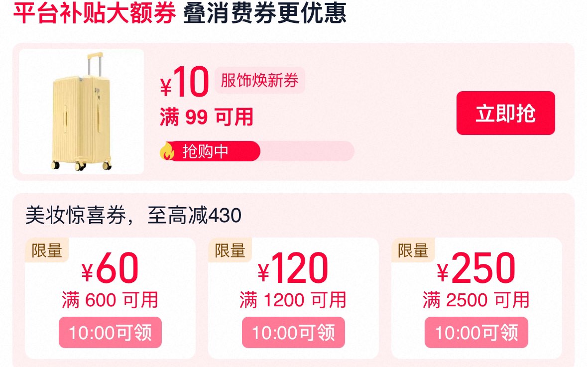 10点 美妆奍 服饰奍 运动券防身