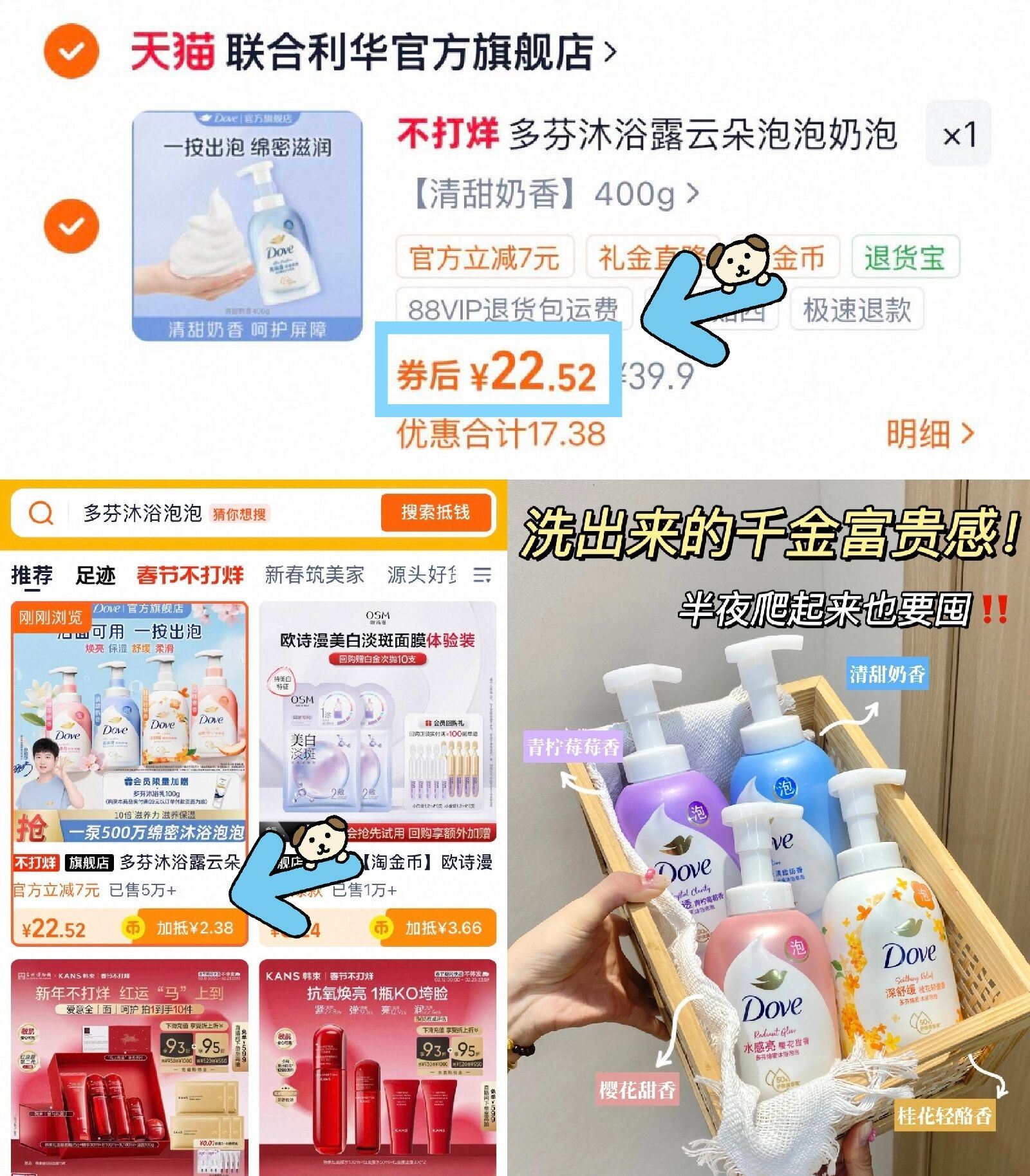 22.5元多芬沐浴露神