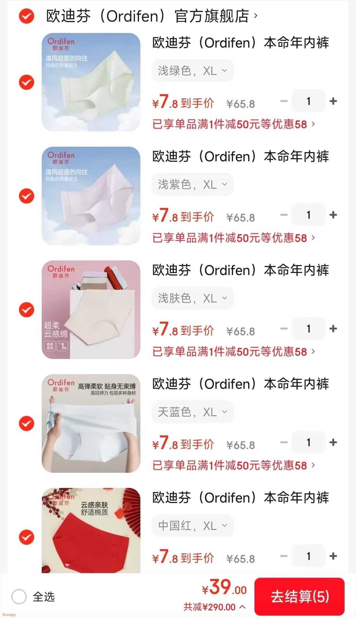 服饰内衣299-40 欧迪芬 Ordifen 女士内裤 95棉高弹,任选5件 39 价格不对的话选择不同颜色的加购就对了好单发报员2026年02月24日 18:500举报 服饰内衣299-40 https://u.jd.com/laHLHCa 欧迪芬 (Ordifen)女士内裤 95棉高弹,任选5件【39】 价格不对的话选择不同颜色的加购就对了 https://u.jd.com/lGHIkyh 复制文案