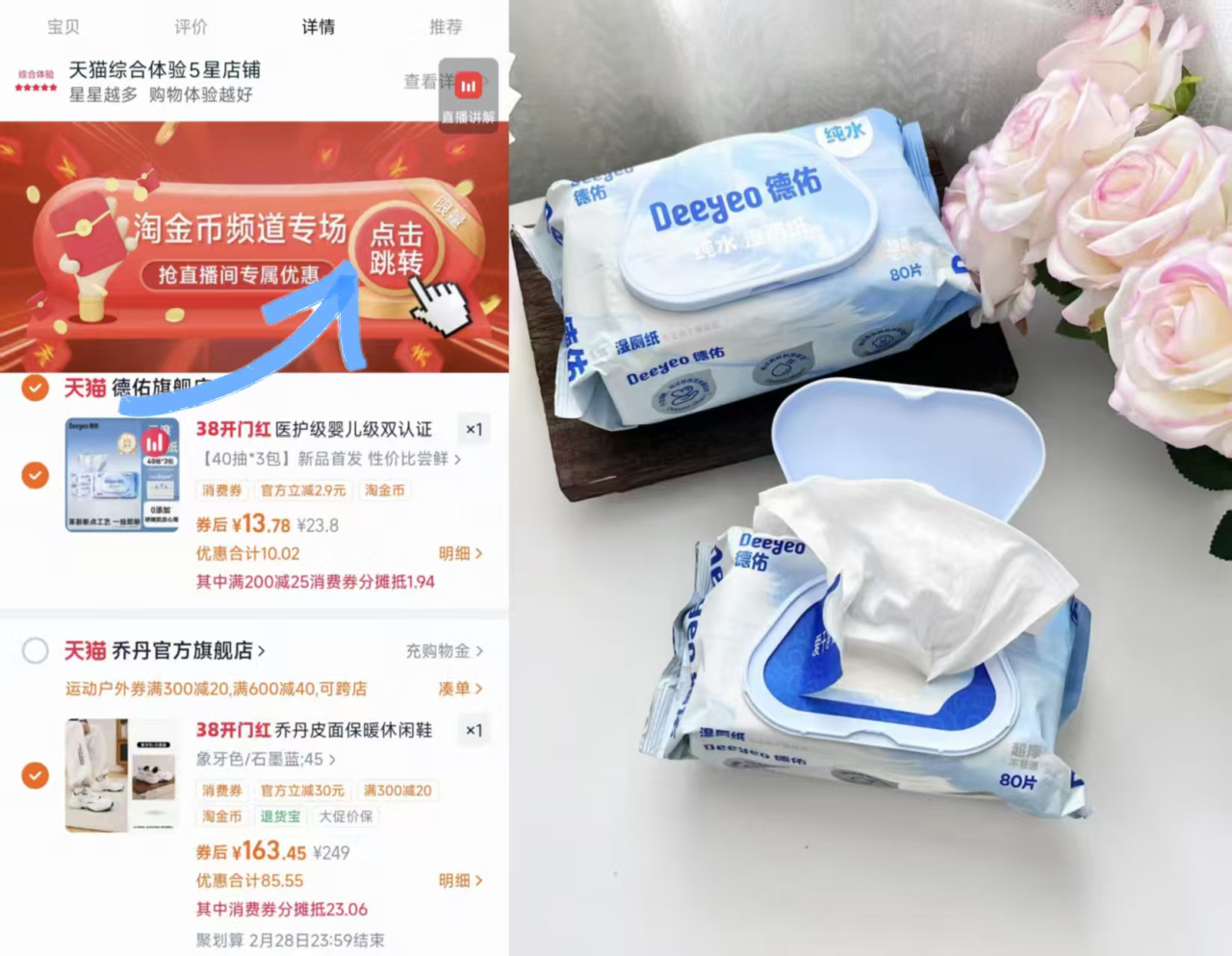 2.凑单商品 加车1件 先一起付款 再退凑单商品 德祐纯水湿厕纸*3包13元.7好单发报员2026年02月24日 21:040举报 2.凑单商品 加车1件先一起付款 再退凑单商品https://m.tb.cn/h.iaA8x5e德祐纯水湿厕纸*3包13元.7-厚度很安心~擦着不会透~添加纯水配方亲肤无刺激复制文案