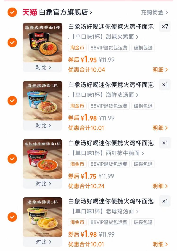 白象mini杯面任选10件19元 - 任选10件一起拍,折合1.9/杯好单发报员2026年02月25日 09:210举报 白象mini杯面任选10件19元-任选10件一起拍,折合1.9/杯可以屯一点 应急、当宵夜都可https://m.tb.cn/h.iaUqWKI复制文案
