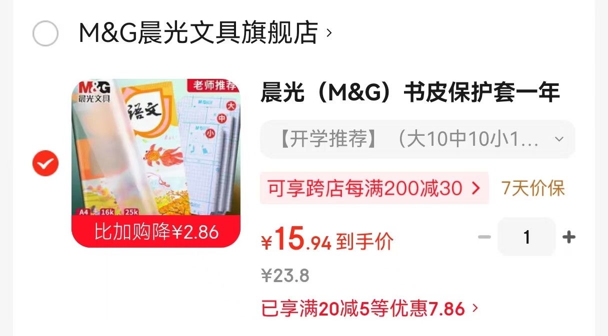 晨光 (M&G)书皮保护套 大10 中10 小10 57枚姓名贴【15.9】