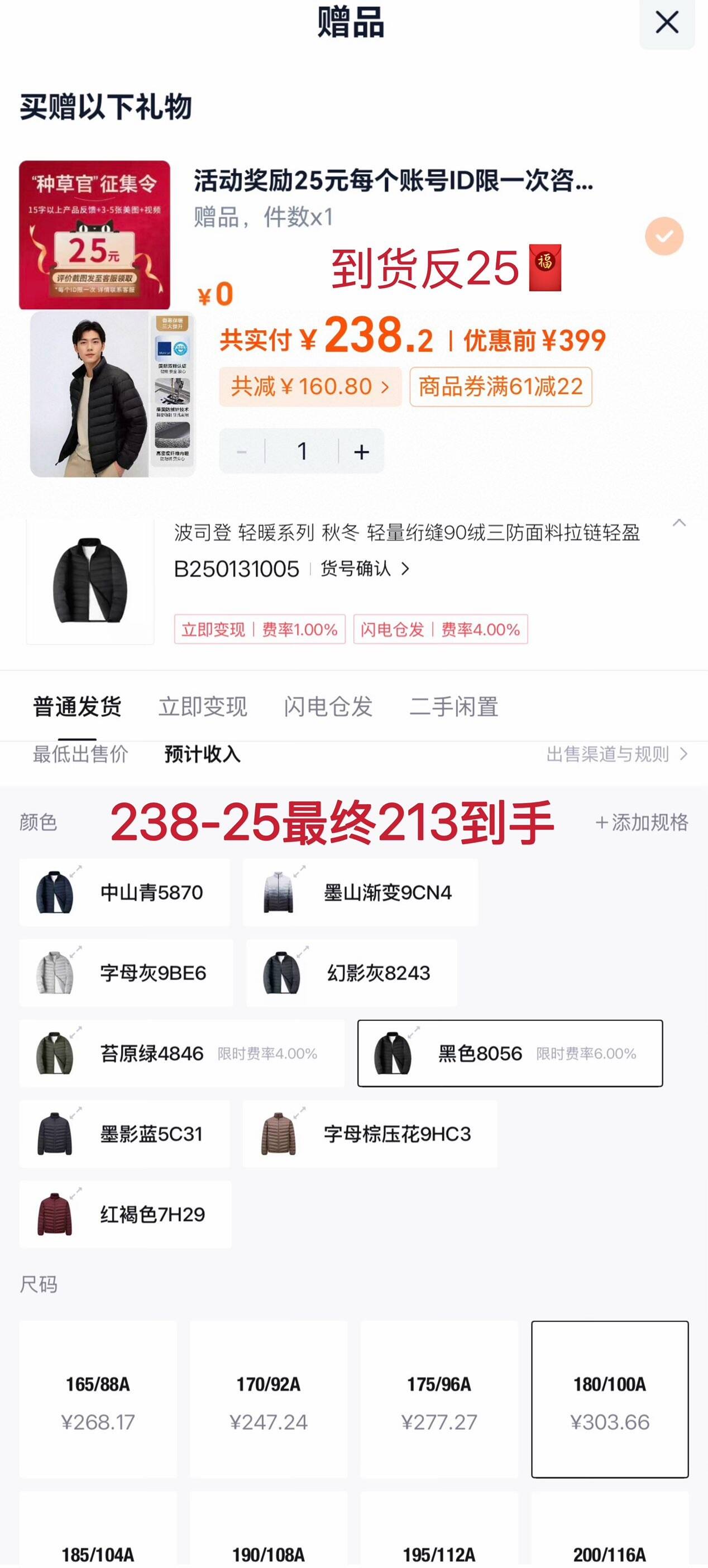 到手238 到货反25 到手213