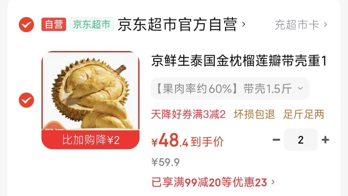 泰国金枕榴莲瓣带壳重1.5斤 拍2件99.83斤 领好单发报员2026年02月25日 20:100举报 泰国金枕榴莲瓣带壳重1.5斤拍2件99.83斤领http://gz.my22.fun/tt1RPy拍https://u.jd.com/lGV6uSi复制文案
