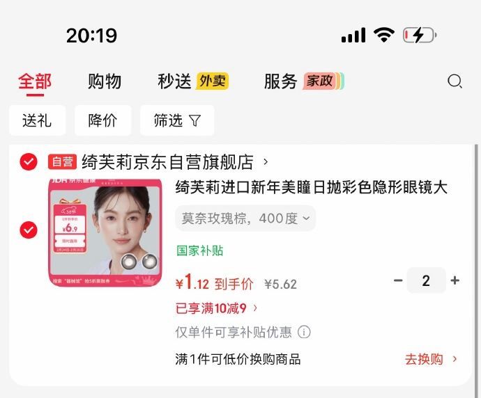 绮芙莉进口新年美瞳日抛1片,拍2件【2.24】