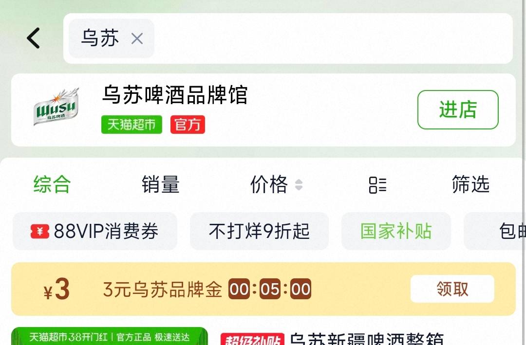 1.猫超搜:乌苏,领3品牌jin