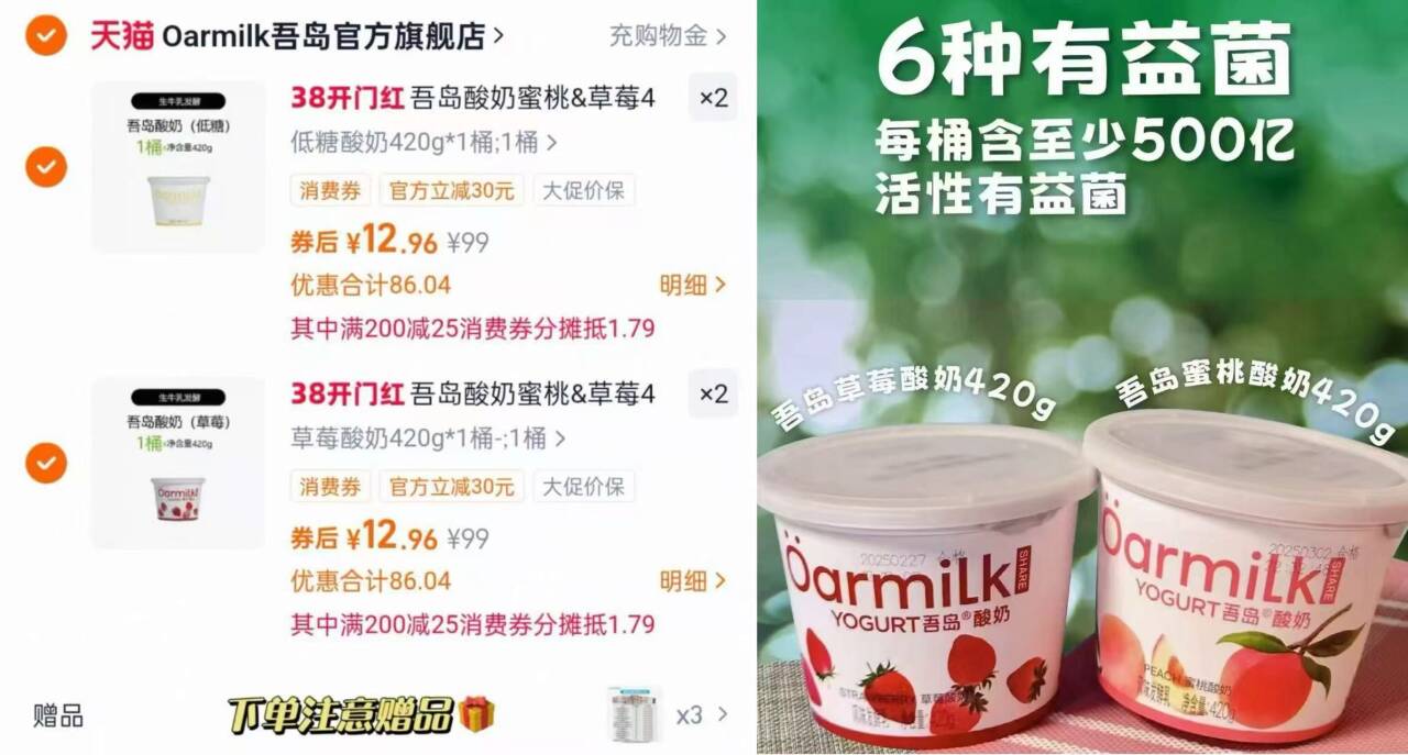 2.凑单商品 加车1件 先一起付款 再退凑单商品 吾岛酸奶4桶 到手51.8元好单发报员2026年02月26日 15:460举报 2.凑单商品 加车1件先一起付款 再退凑单商品https://m.tb.cn/h.iZ5sfkI吾岛酸奶4桶 到手51.8元-配料干净,口感香醇丝滑节后轻断食必备 好吃负担低复制文案
