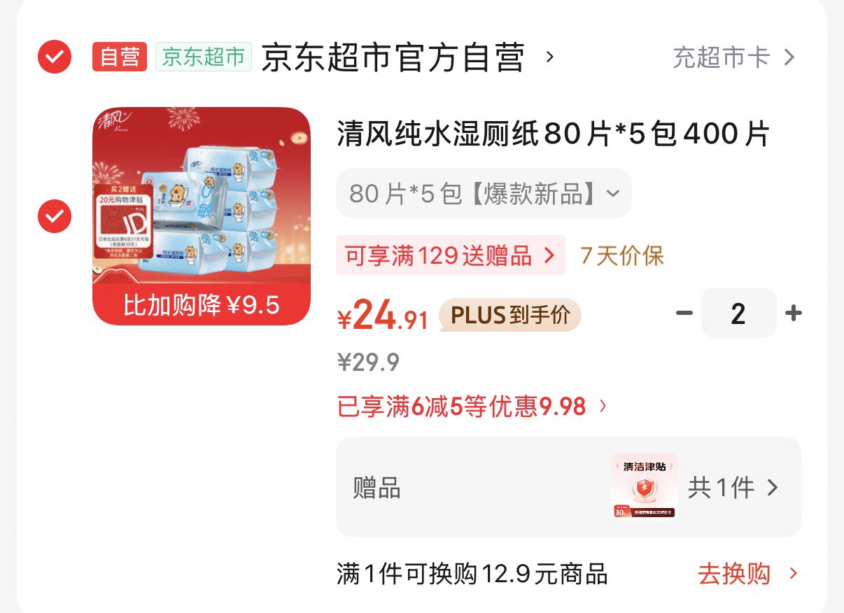 限陕西 湖北 福建厦门 江苏宿迁 江西等地 清风纯水湿厕纸80片*5包 浏览加购砸蛋如砸6-5券 好单发报员 2026年02月26日 17:37 0 举报 限陕西 湖北 福建厦门 江苏宿迁 江西等地清风纯水湿厕纸80片*5包浏览加购砸蛋如砸6-5券叠2首购拍2件49.8亓反20亓E卡 折2.9亓/包https://u.jd.com/lO957CL 复制文案
