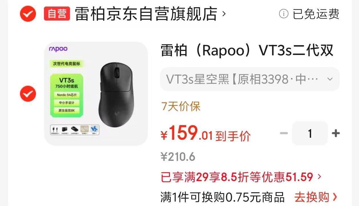 雷柏VT3s二代双8K电竞鼠标【159】