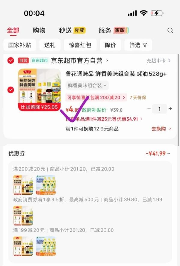鲁花调味品 鲜香美味组合装 蚝油528g (酱油 料酒 糯米白醋)*418ml,凑后【4.89】