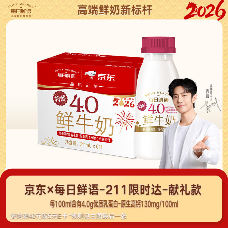 自营每日鲜语 鲜牛奶4.0g 211ml*6瓶