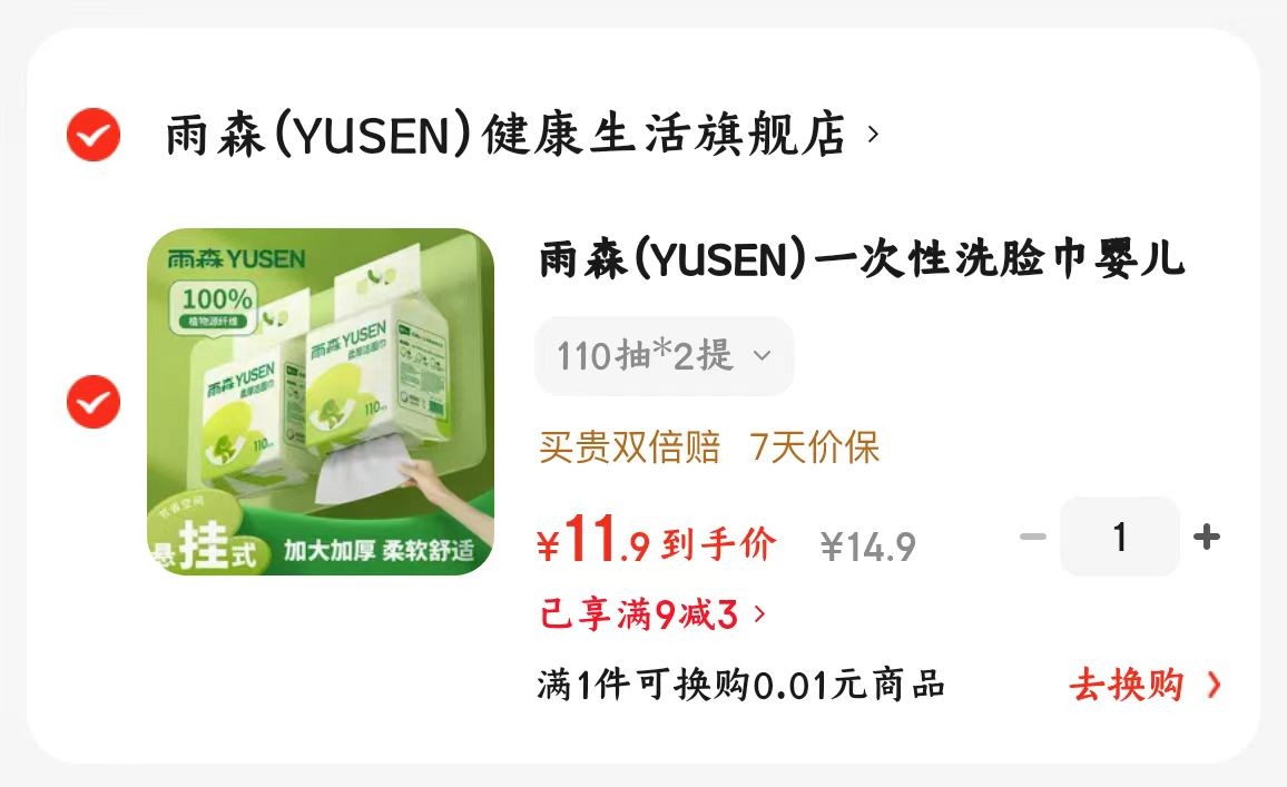 雨森 (YUSEN)一次性洗脸巾婴儿加厚 110抽*2提【11.9】