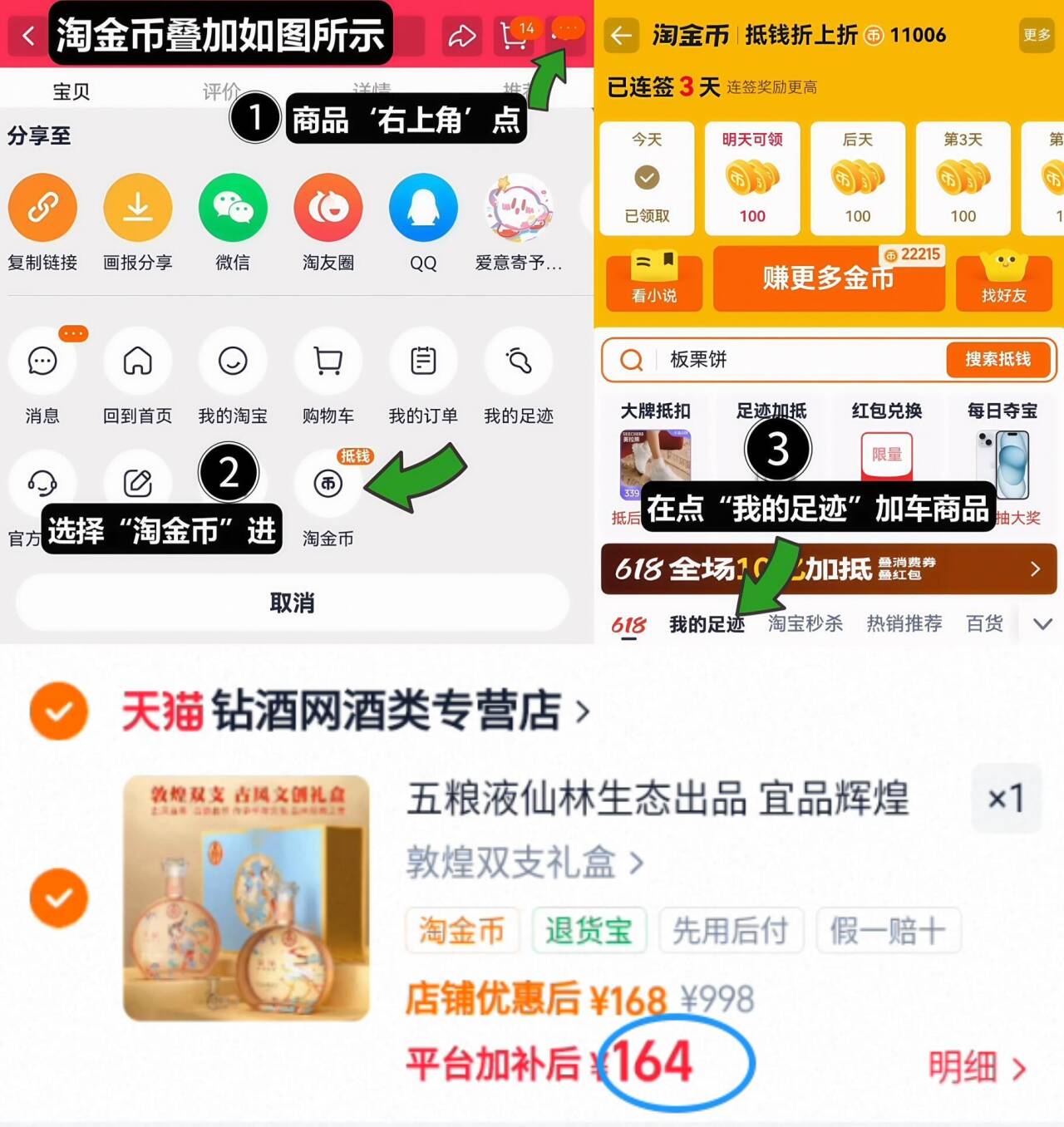 1、如图点右上角3个点,选淘金币