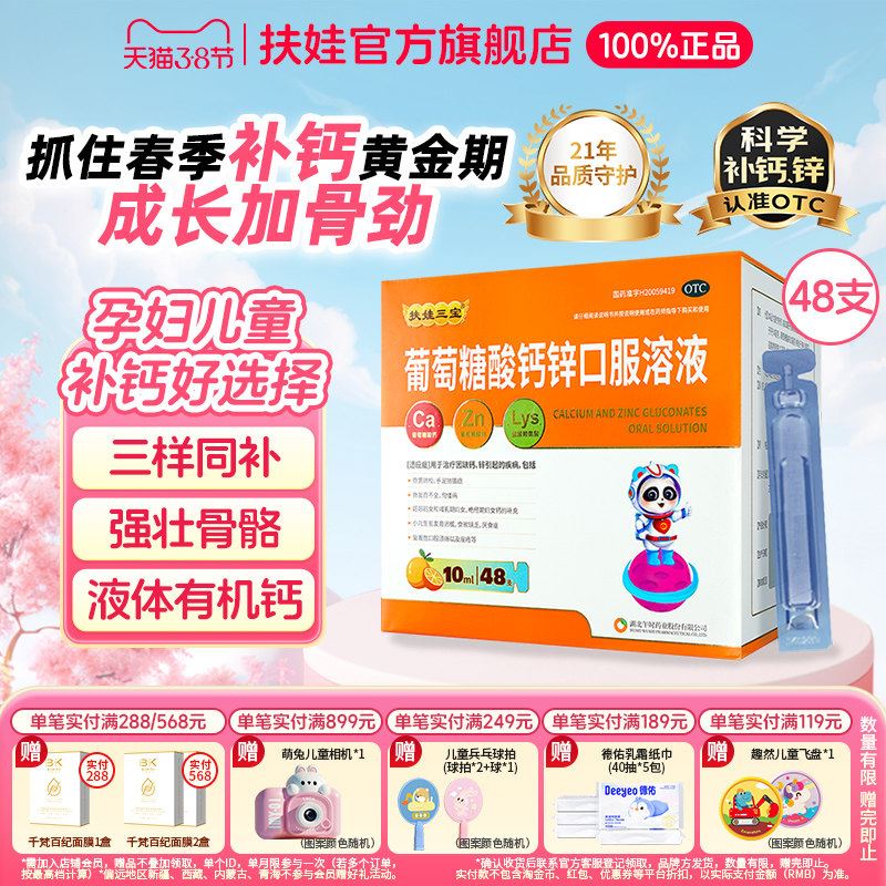 扶娃OTC版 葡萄糖酸钙锌 48支*3盒,144支选项 右上角金币入口拍169元