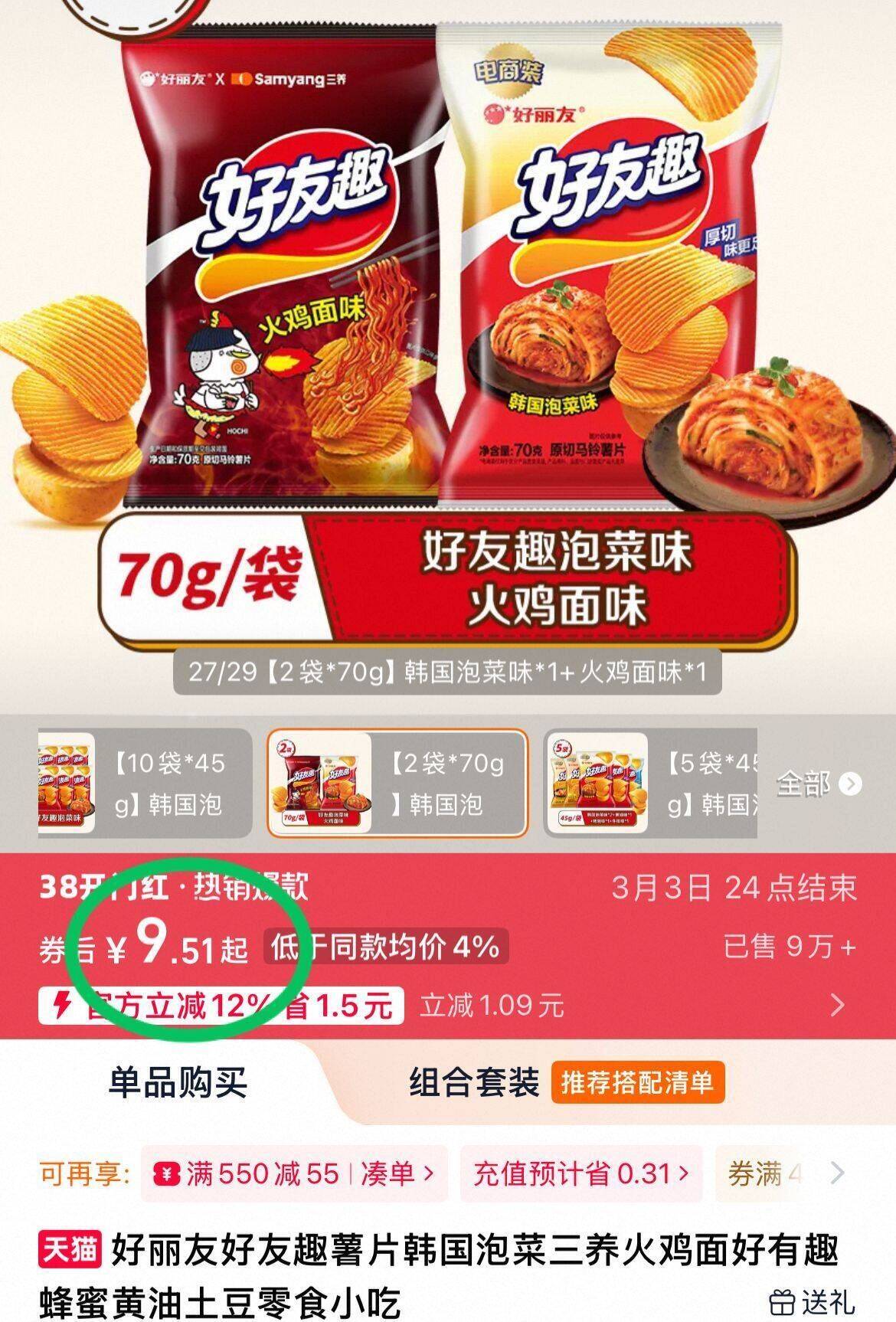 9元.5元!2袋共70g 好丽友 双口味薯片组合 2种口味 香香脆脆咸甜适中好单发报员2026年02月28日 15:200举报 9元.5元!2袋共70g【好丽友】双口味薯片组合2种口味 香香脆脆咸甜适中 厚切超大片 不是那种薄薄的-https://m.tb.cn/h.ibx1EQb复制文案