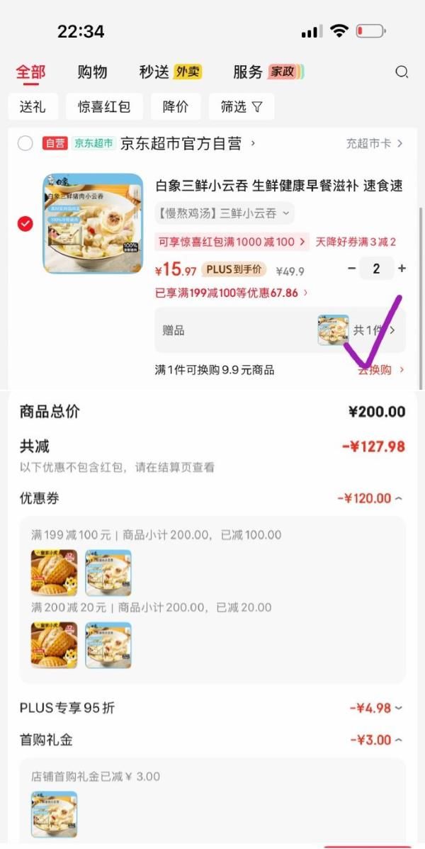 凑单默认数量