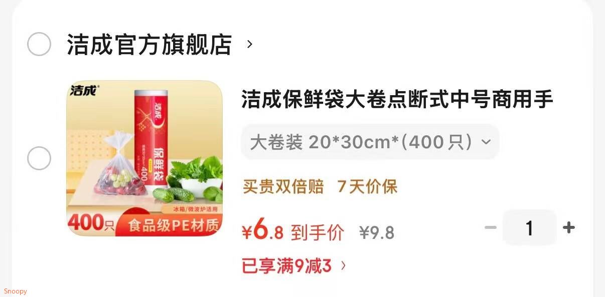 洁成 保鲜袋大卷点断式 20*30cm*400只【6.8】