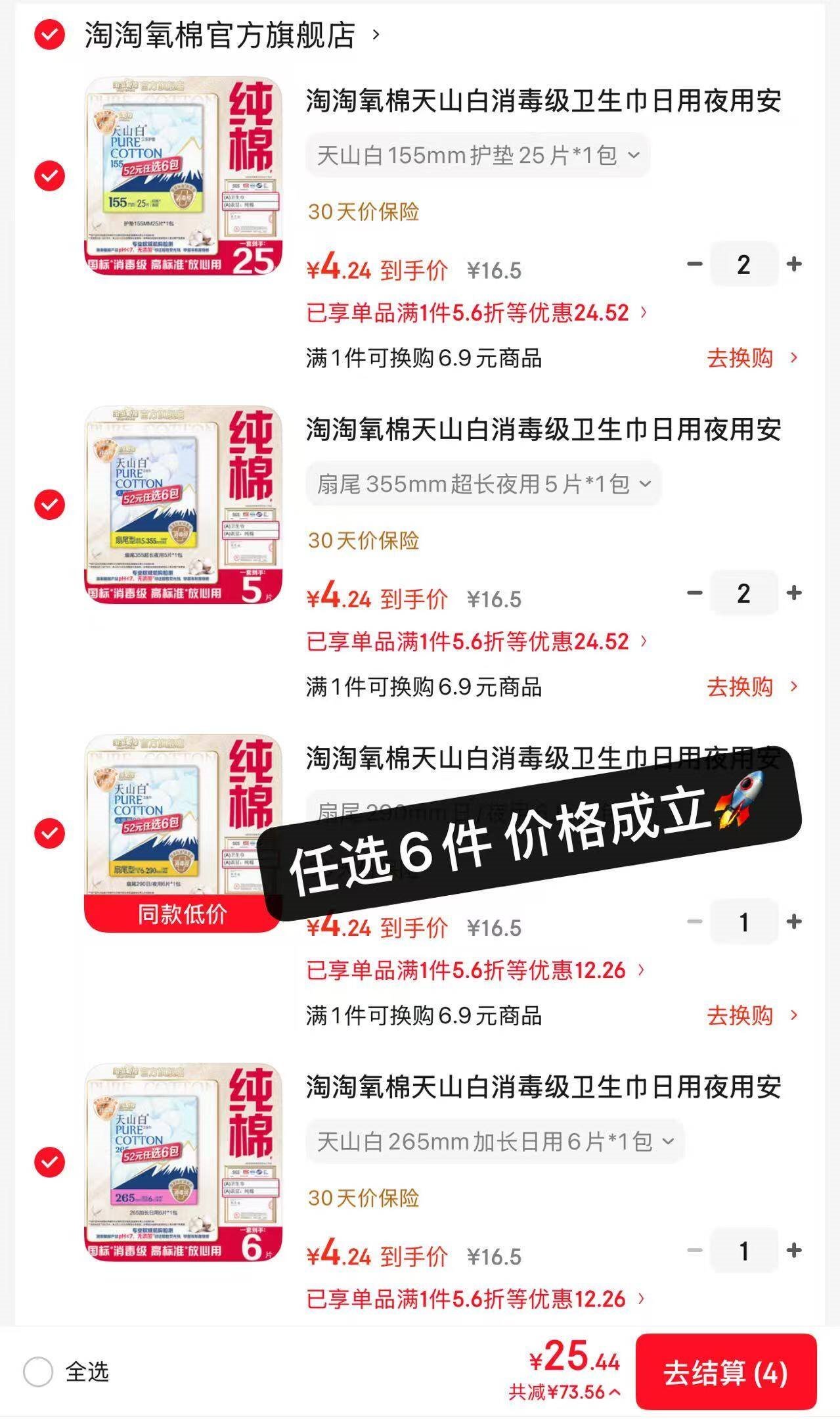 任选6件25.4亓,折4.2亓/包