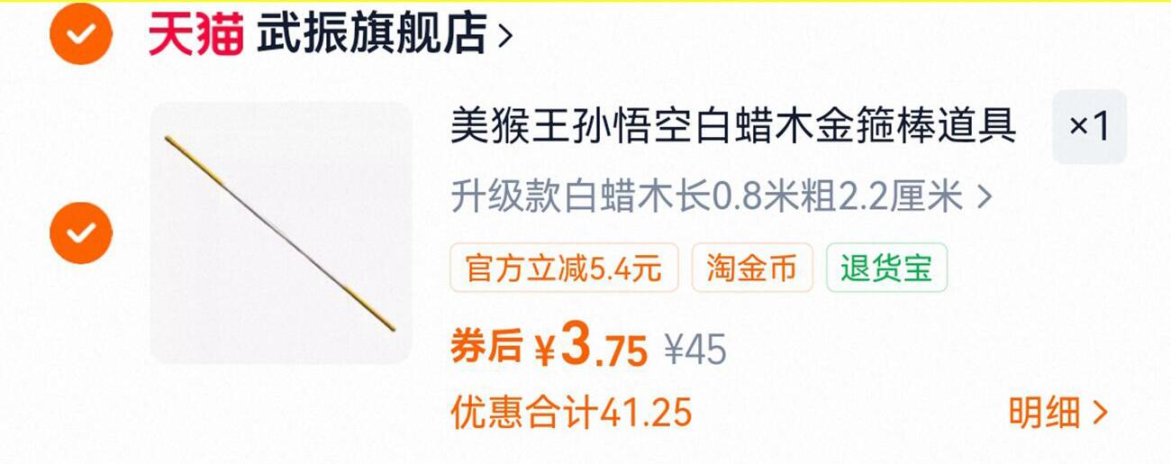 去淘金币拍 3.7 美猴王孙悟空白蜡杆金箍棒 好单发报员 2026年03月02日 00:12 0 举报 去淘金币拍 3.7美猴王孙悟空白蜡杆金箍棒https://m.tb.cn/h.ibAHFjb 复制文案