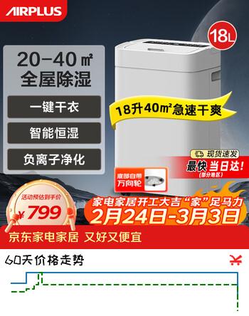 【8折】艾普莱斯(AIRPLUS)除湿机/抽湿机 家用轻音干衣机18L/天 适用40㎡地下室干燥机回南天除湿干衣机APP智控AP18-2418EW